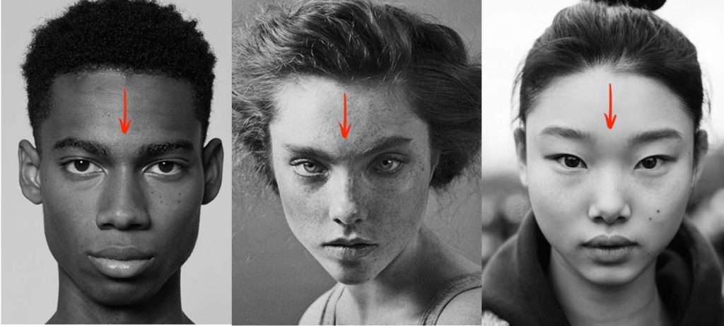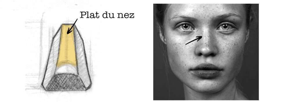 ▪︎ Le haut du nez monte jusqu’aux sourcils. Sur les portraits, cette zone est habituellement grisée.