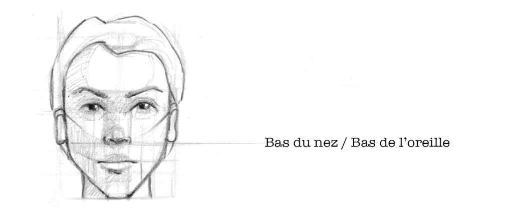 → La longueur du nez dépend de chaque personne, mais, généralement le bas du nez se situe sur la ligne du nez, au même niveau que le bas de l’oreille.