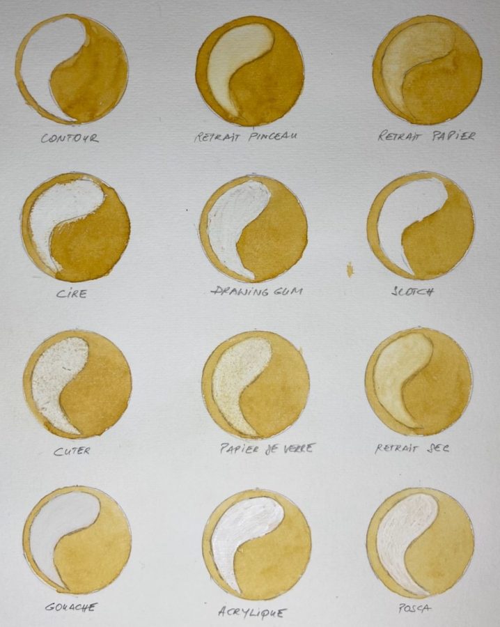 → Il existe 4 grands types de techniques pour gĂ©rer les blancs Ă  l’aquarelle :