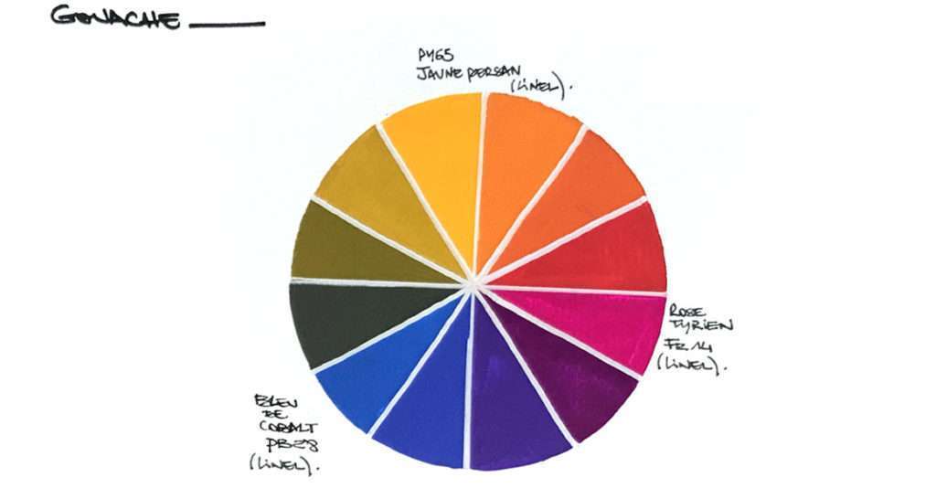 N’oubliez pas de noter les références pigmentaires directement sur votre cercle chromatique gamut pour ne pas les oublier (cf Color Index).