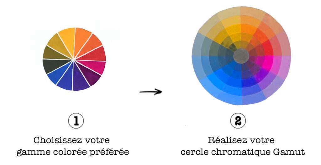 3️⃣ Réalisez le cercle chromatique issu de votre gamme colorée.