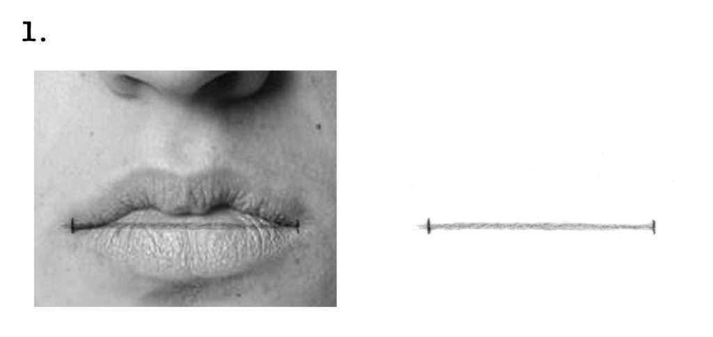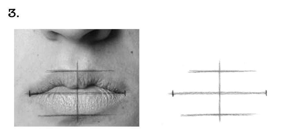 ▪︎ Commencez par déterminer la largeur de la bouche en traçant une droite horizontale ainsi que ses deux extrémités.
