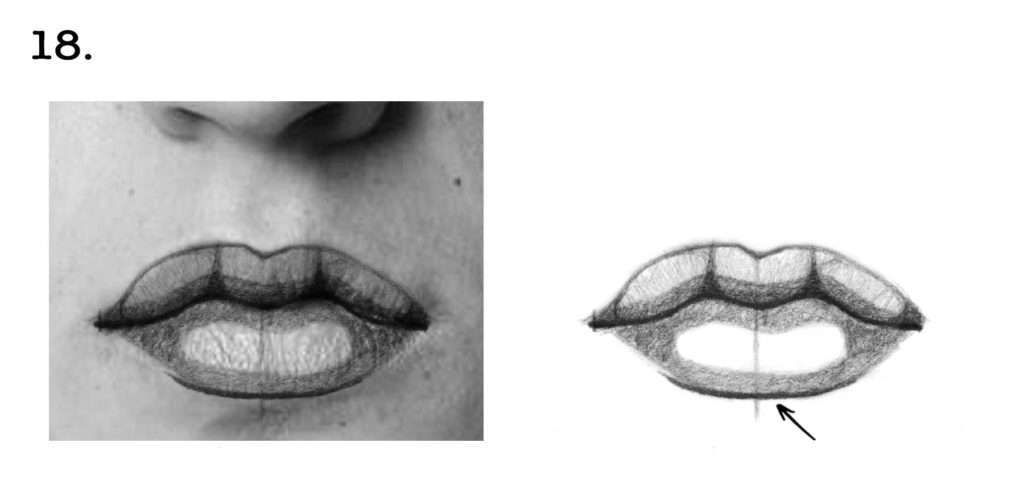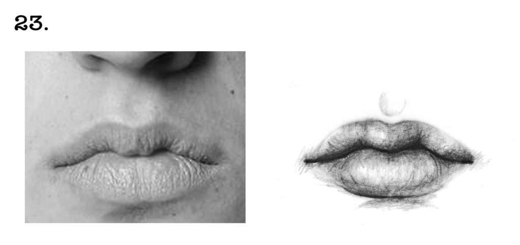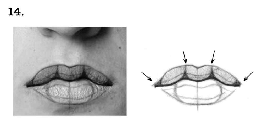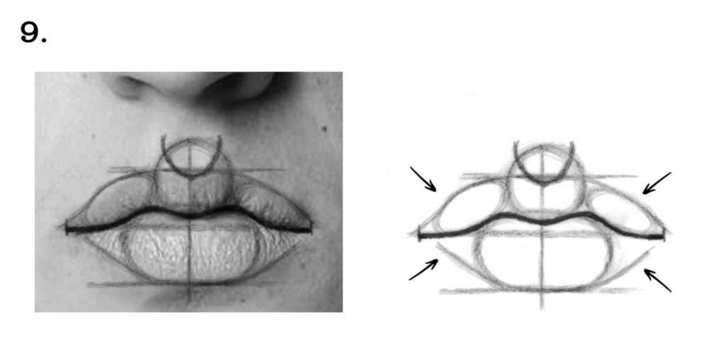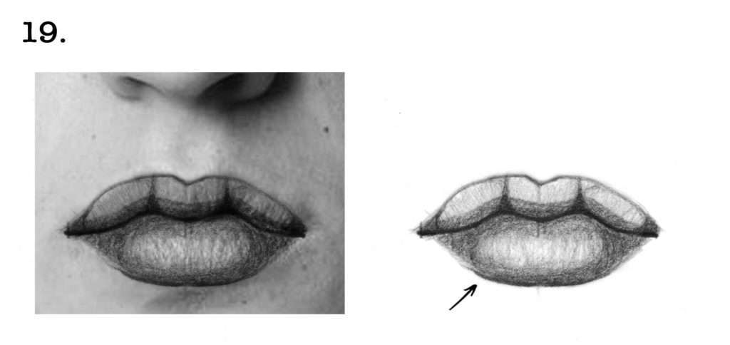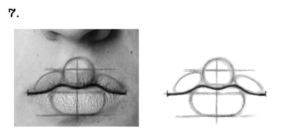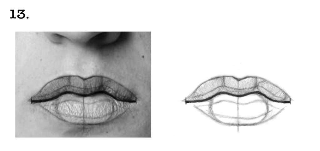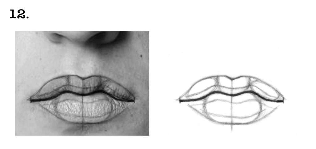 ✔︎ Une fois votre dessin juste et solide, passons ensuite au modelé et aux ombrages de notre bouche.