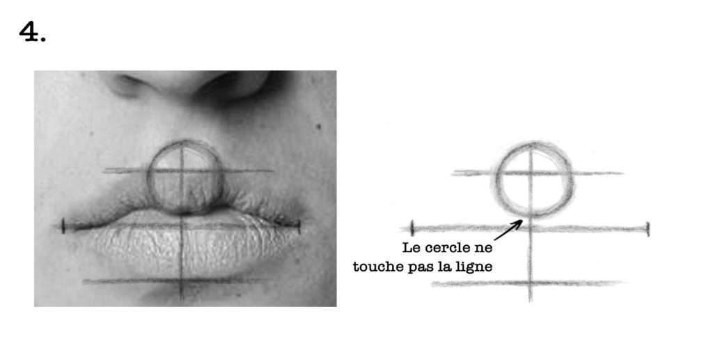 ▪︎ Placez un cercle correspondant au volume du tubercule de la lèvre supérieure.