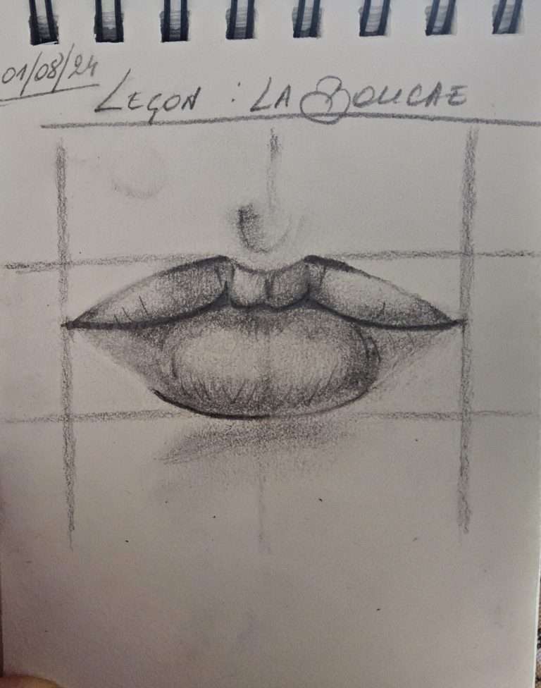 ✔︎ Une fois votre dessin juste et solide, passons ensuite au modelé et aux ombrages de notre bouche.