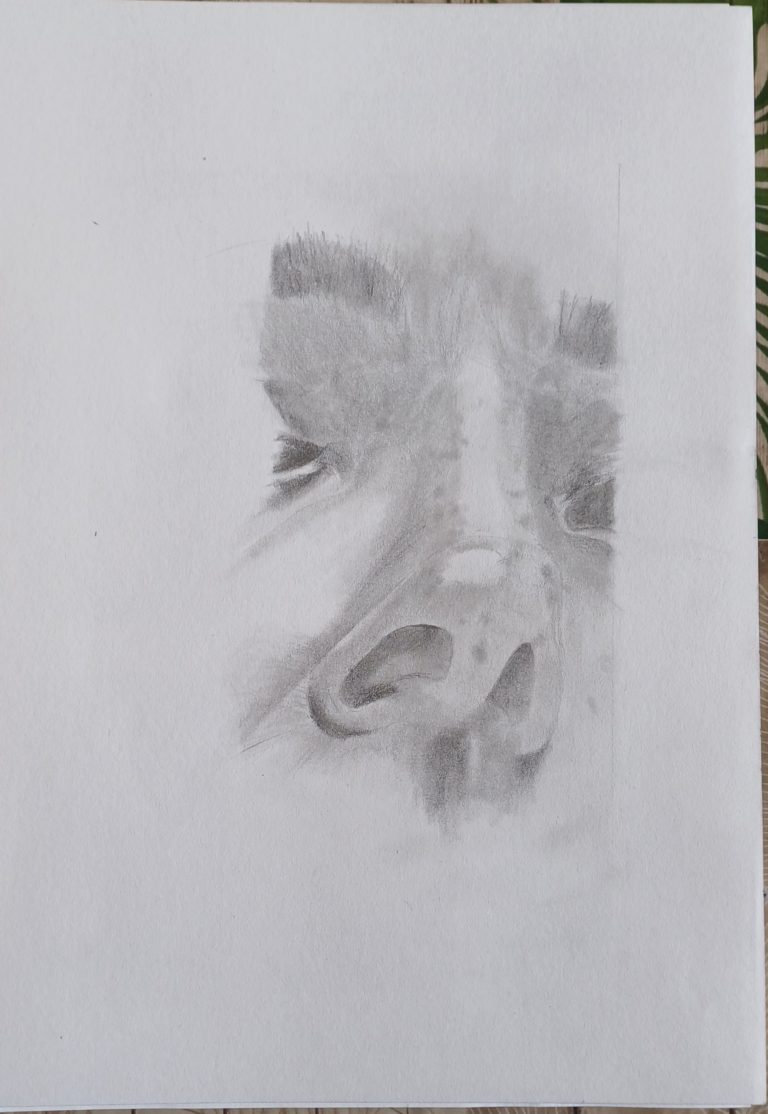 Foncez toujours bien le creux des trous de nez (vous devez obtenir un gris qui se rapproche du noir).