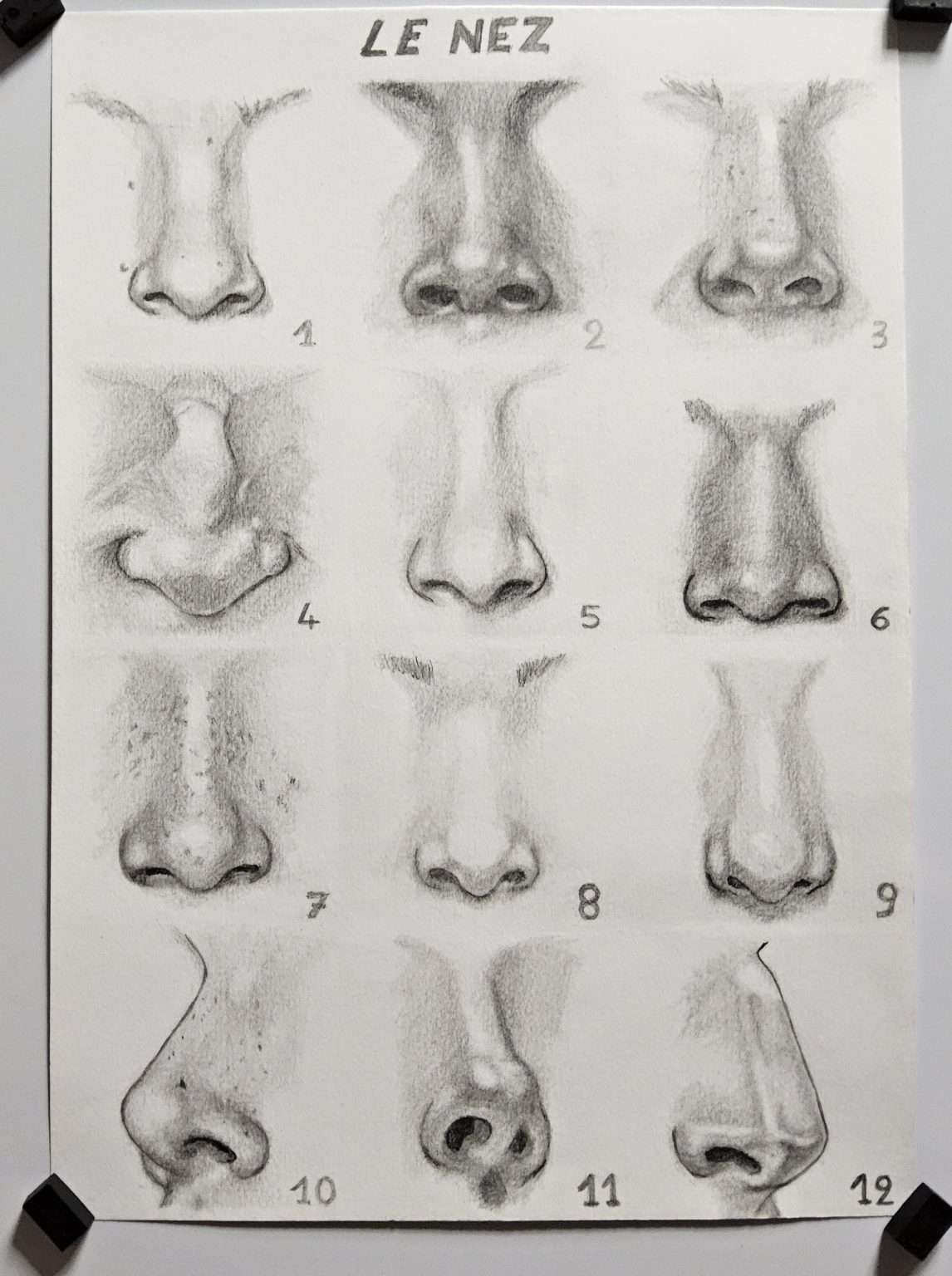 ✔︎ Entrainez-vous à dessiner TOUS ces nez dans votre carnet de croquis, en soignant la mise en page.
