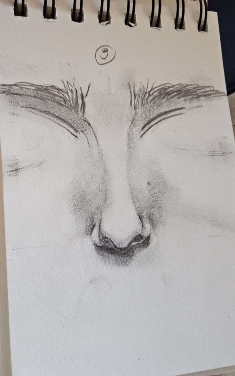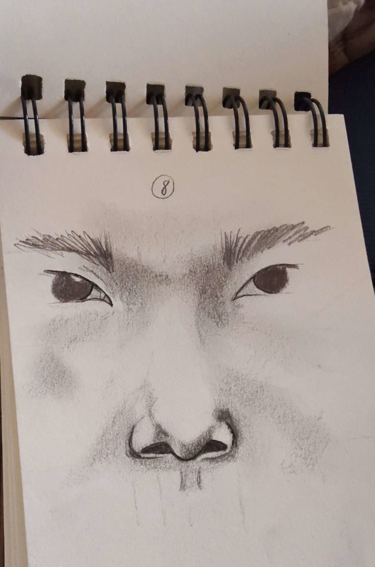 Veillez à bien foncer tous les creux (comme les trous de nez). Il faut qu’ils soient bien noirs.
