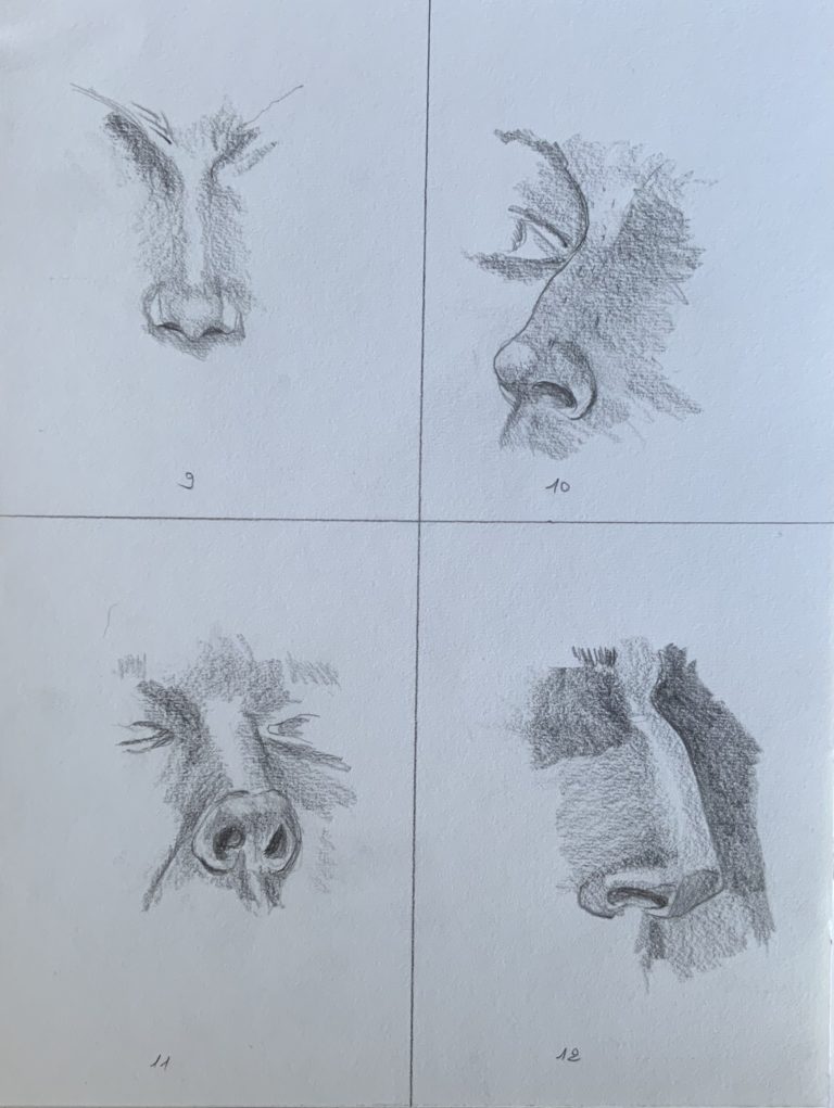 Voici les quelques dessins de nez que j’ai réalisé tant bien que mal.