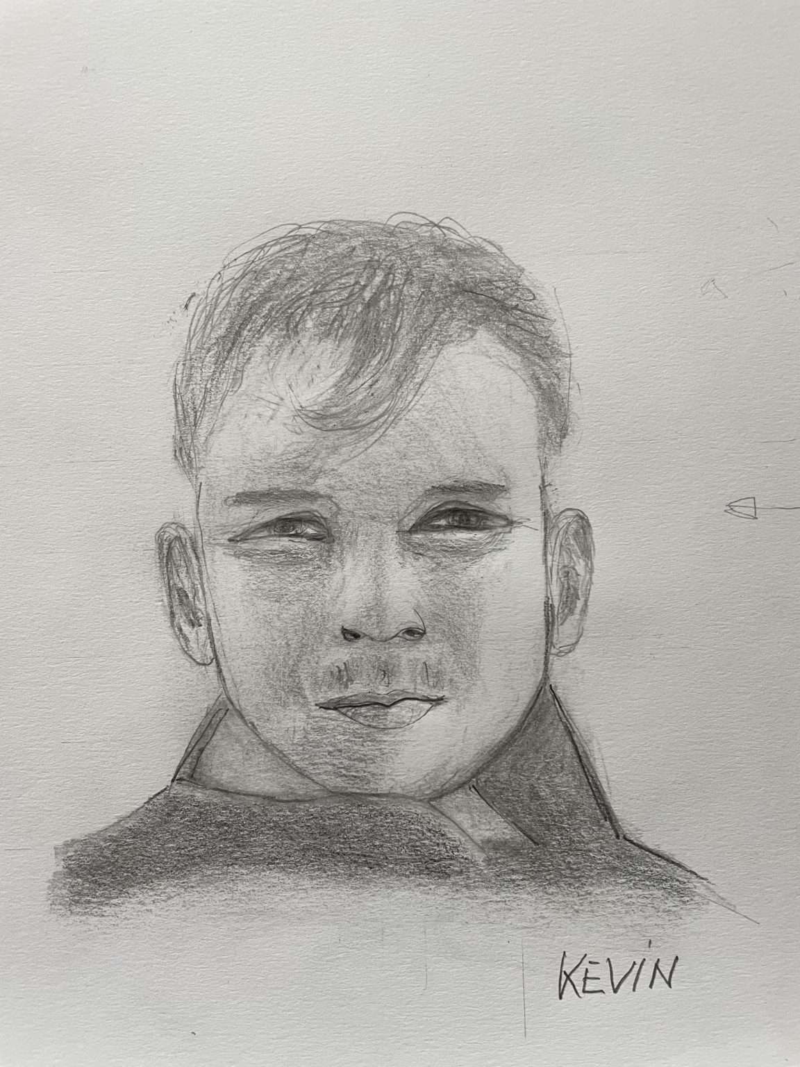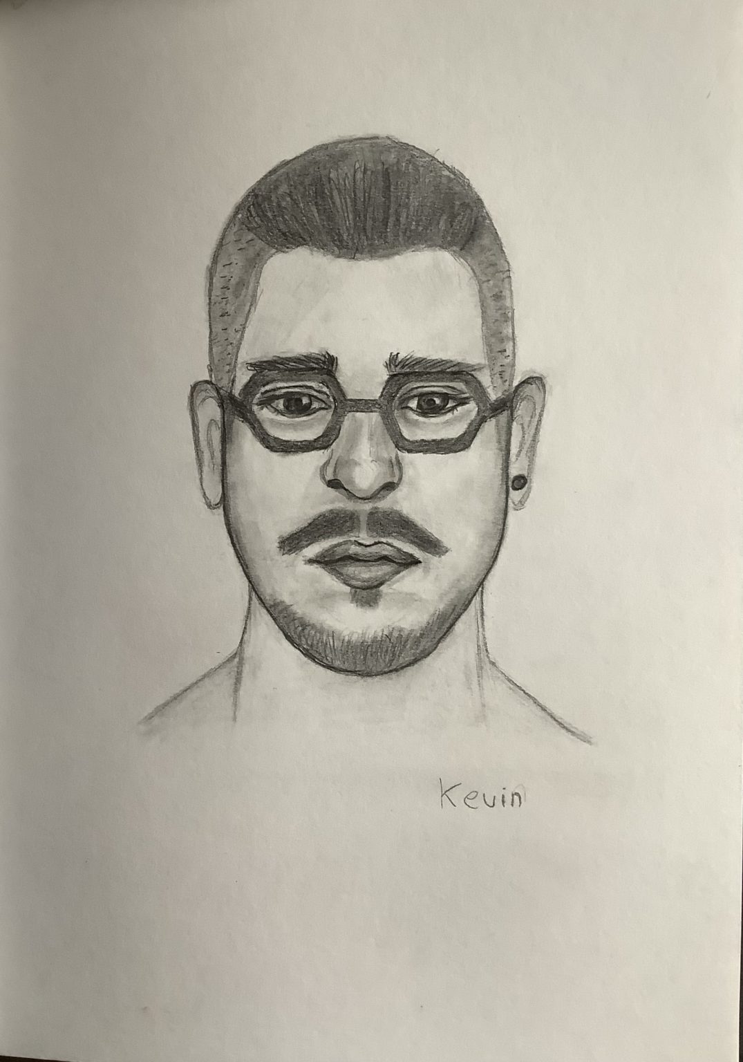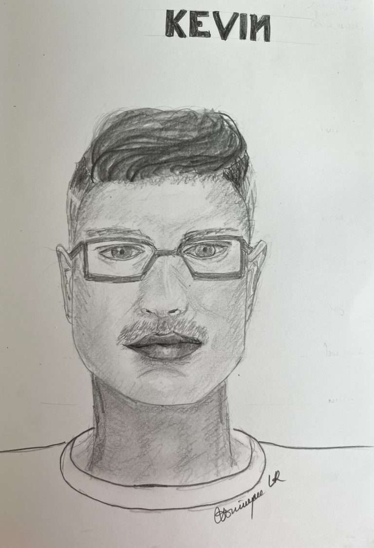 Voici Kévin. Jeune homme qui veut se donner un air plus sérieux avec sa moustache et sa barbichette.