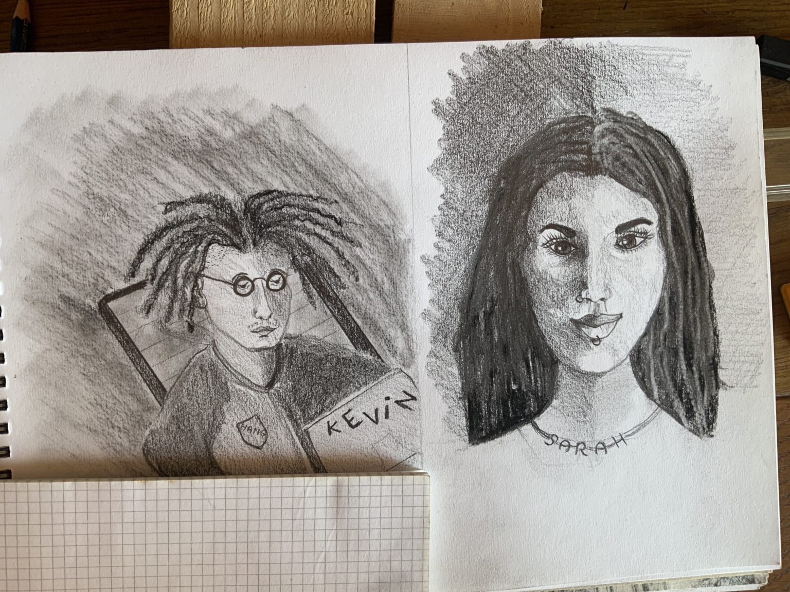 Bonsoir Joanaa voici mes portraits. Je m’arrive pas à déterminer s’ils relèvent plus de la caricature ou du portrait. Je n’ai pas forcé sur les ombres … Je me réjouis de poursuivre cette formation 😀