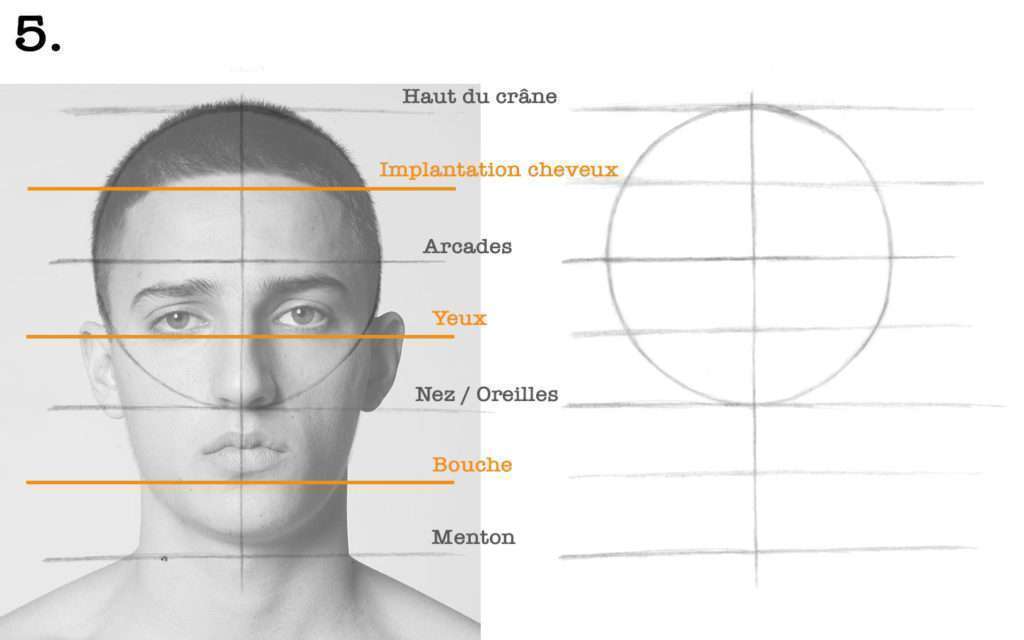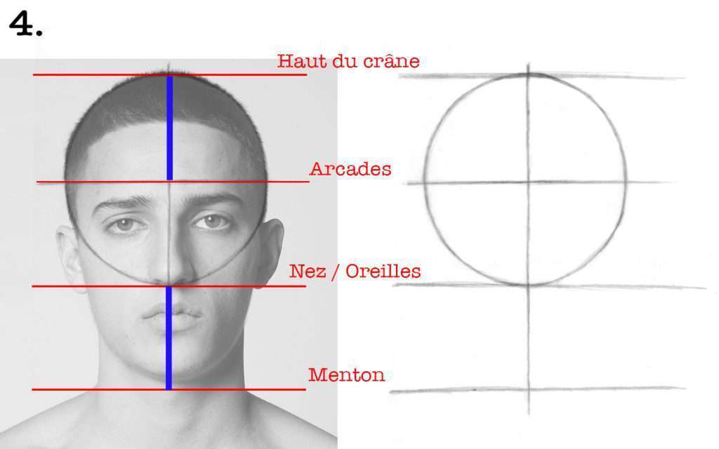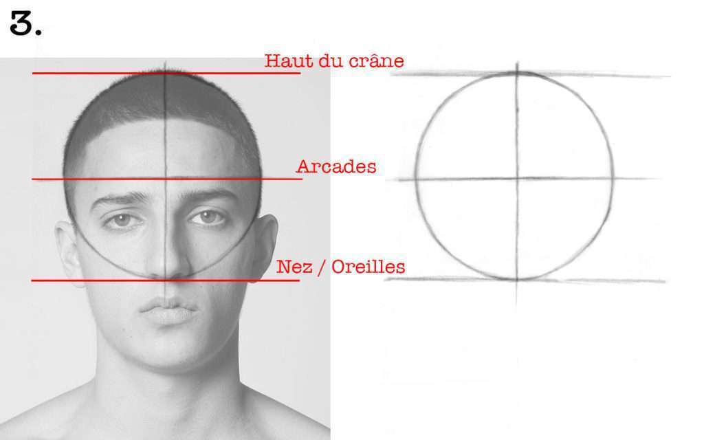 ❗️ Attention, ces traits de constructions vont disparaitre par la suite, soyez donc léger dans votre crayonné et n’appuyez pas trop.