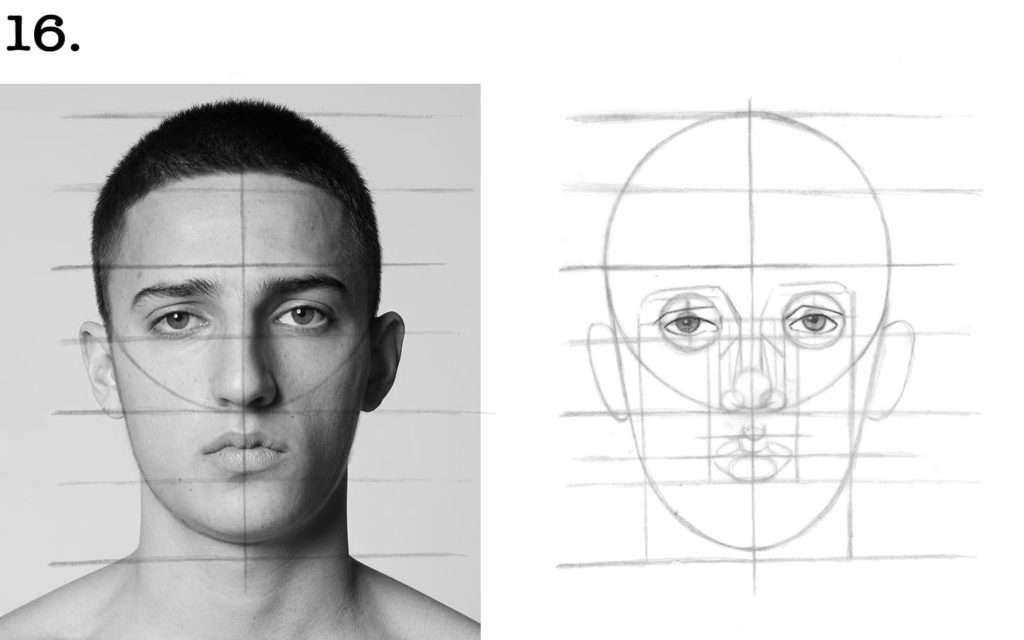 ➜ Ces lignes nous aident à mieux visualiser la taille des segments qui nous serviront à poser la grille du visage.
