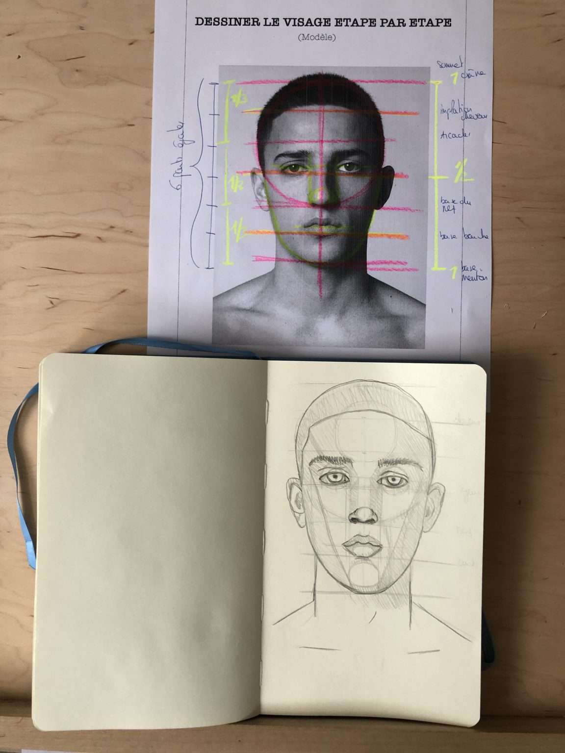 ❗️ Attention, ces traits de constructions vont disparaitre par la suite, soyez donc léger dans votre crayonné et n’appuyez pas trop.