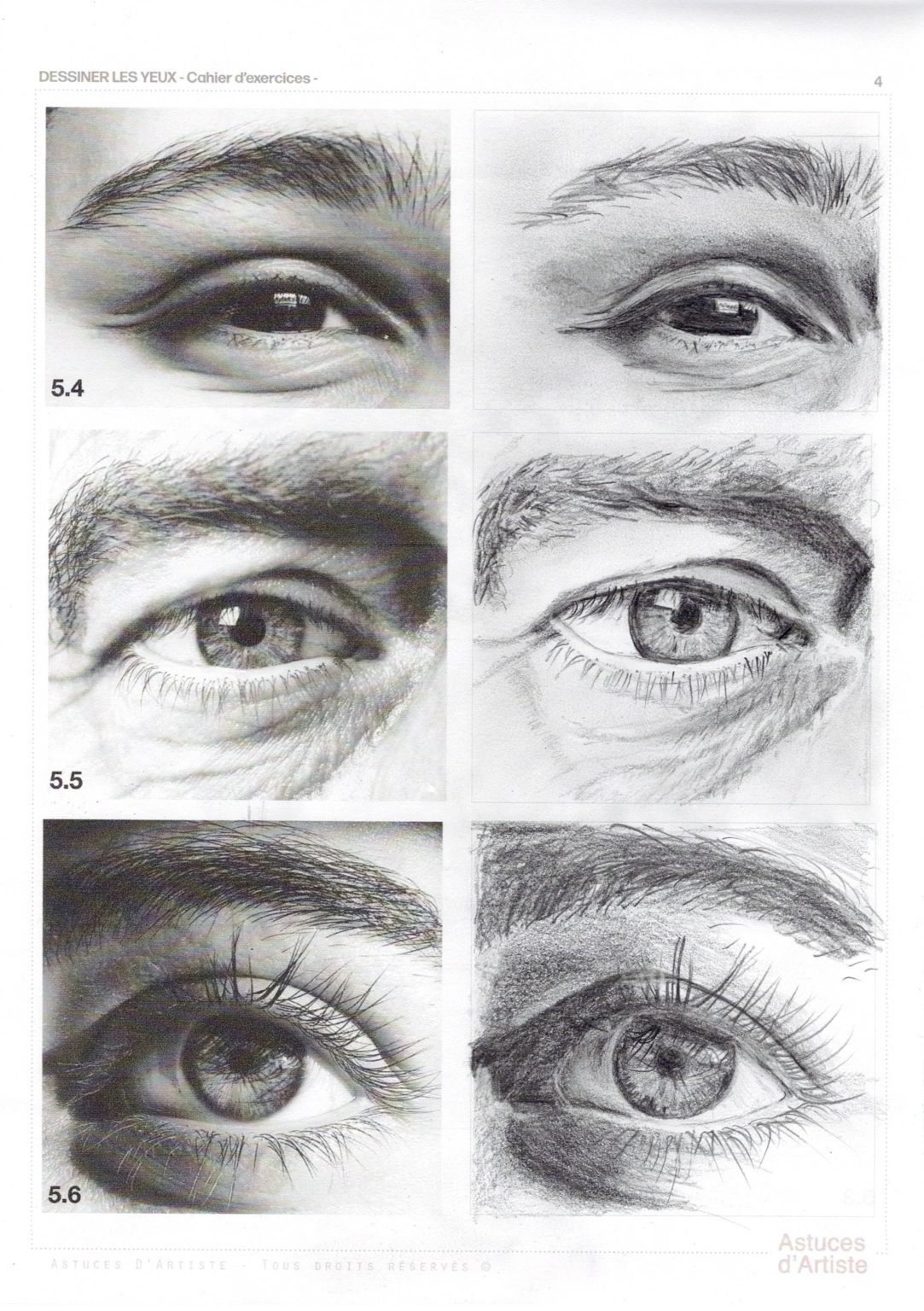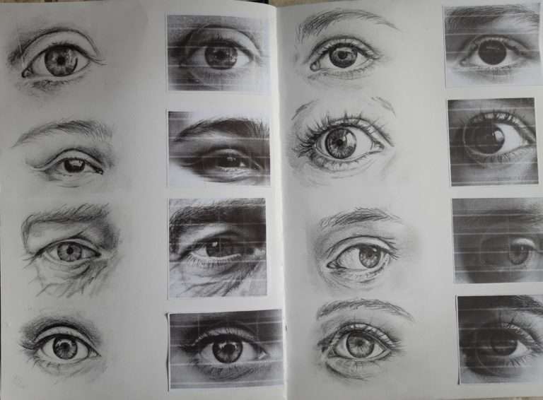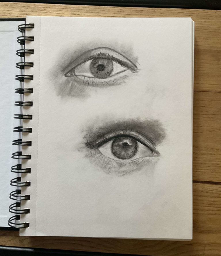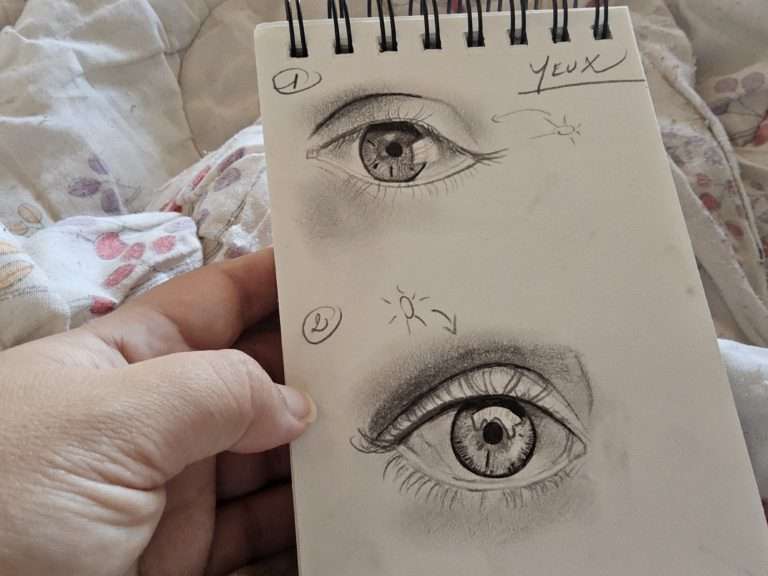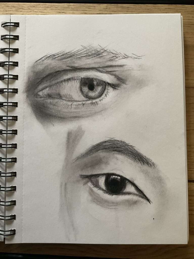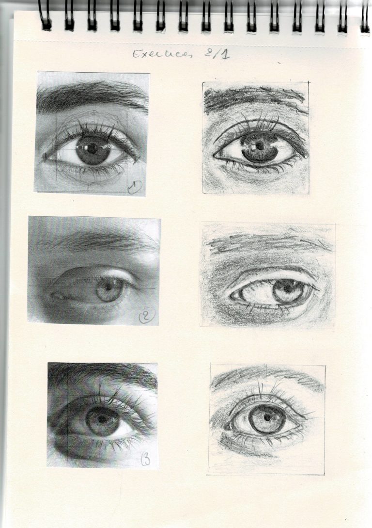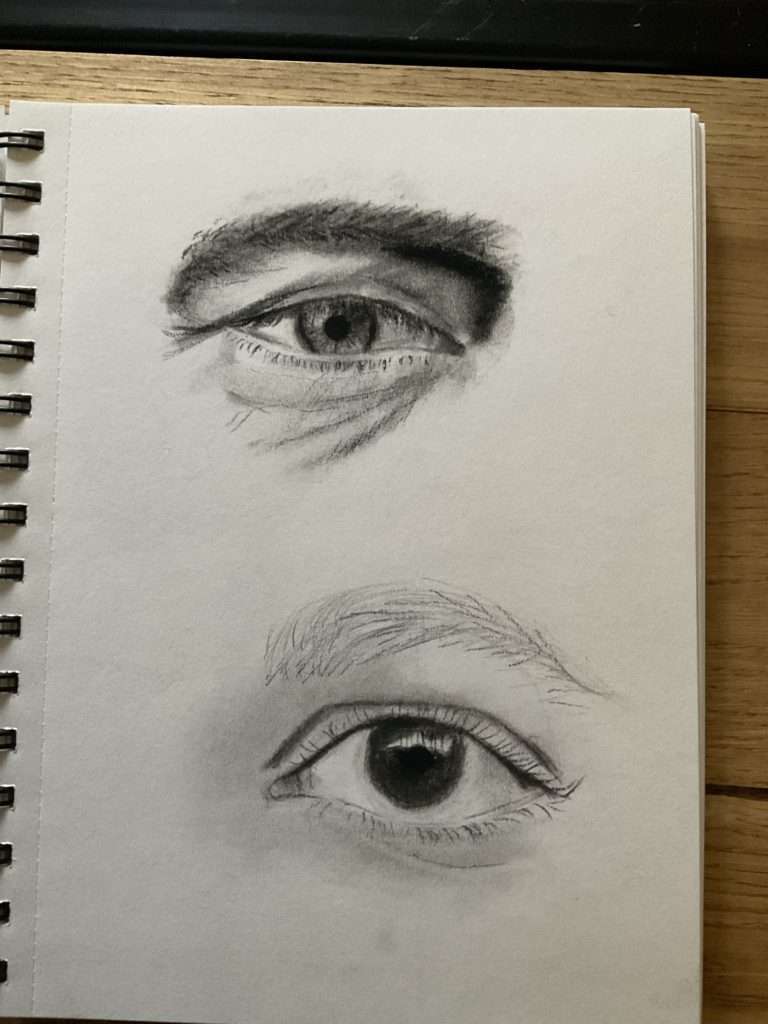 Voici les esquisses réalisées sur les yeux. En effet, c’est en pratiquant que l’on intègre la technique.