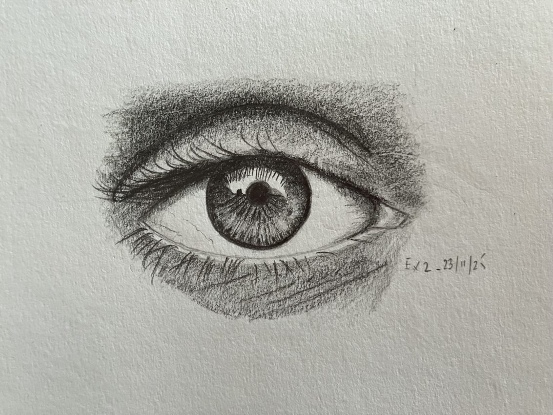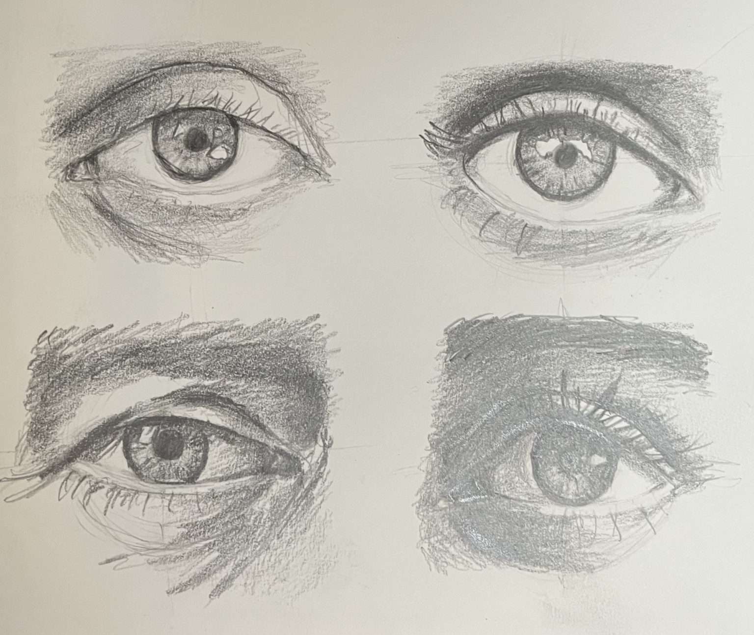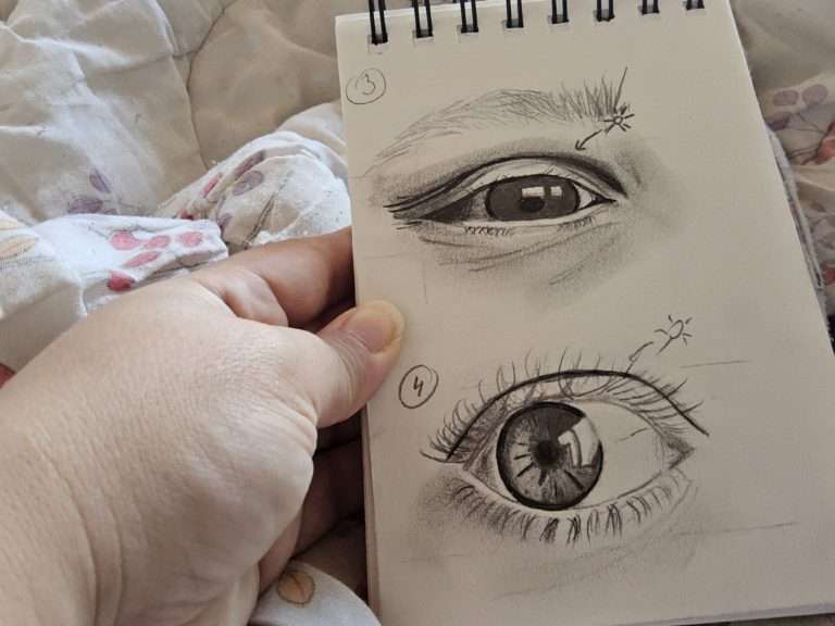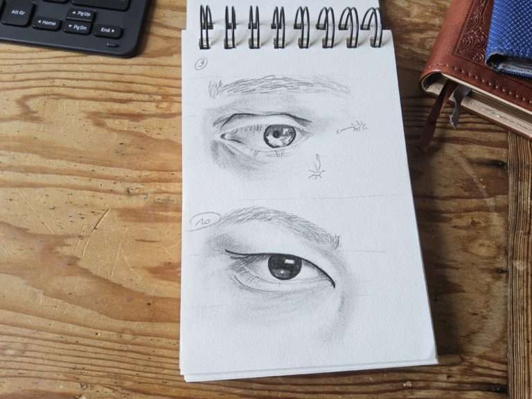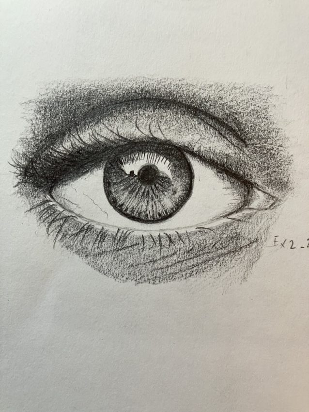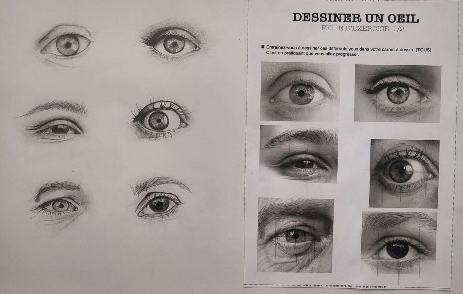 Voici les esquisses réalisées sur les yeux. En effet, c’est en pratiquant que l’on intègre la technique.