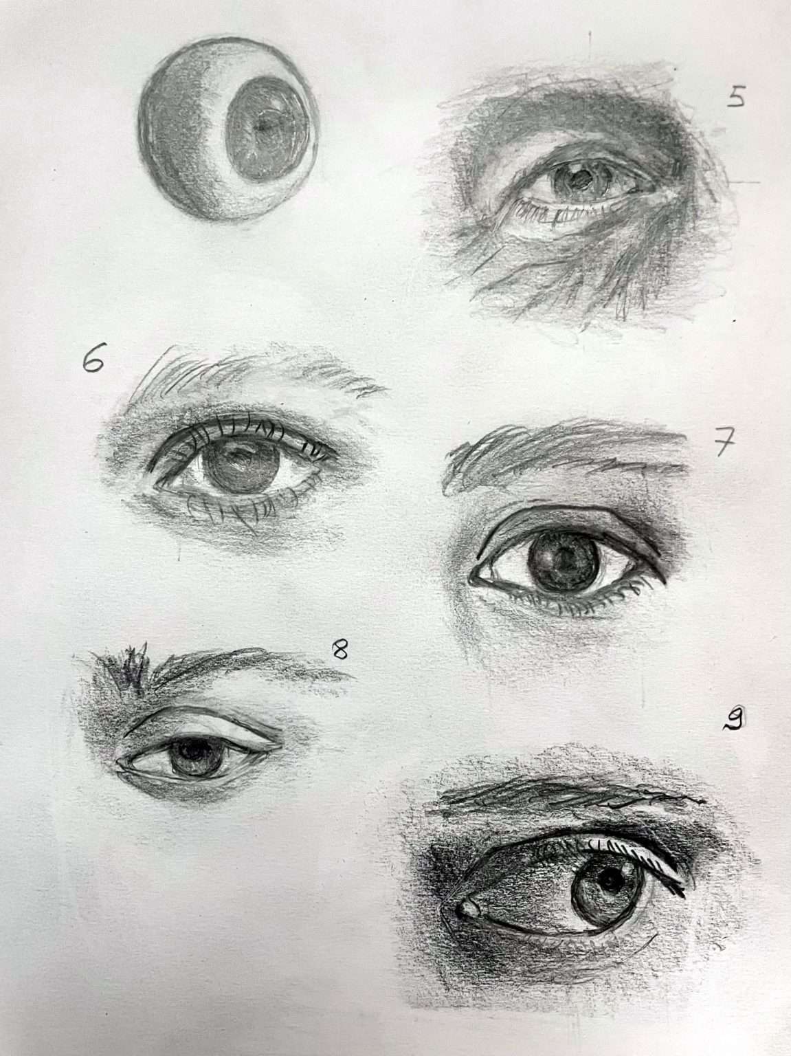 Voilà mes exercices concernant le dessin des yeux. Ce fut long mais très intéressant des dessiner tous ces yeux différents.