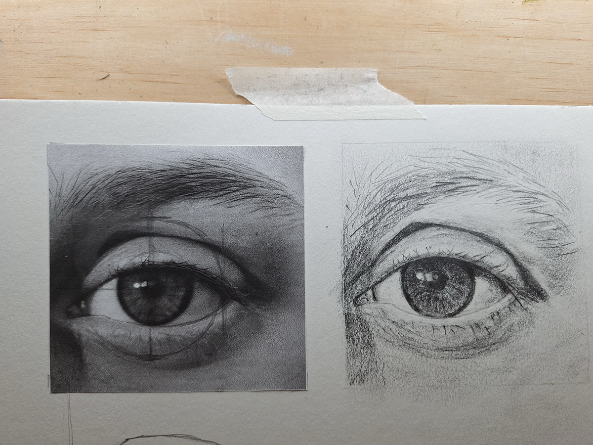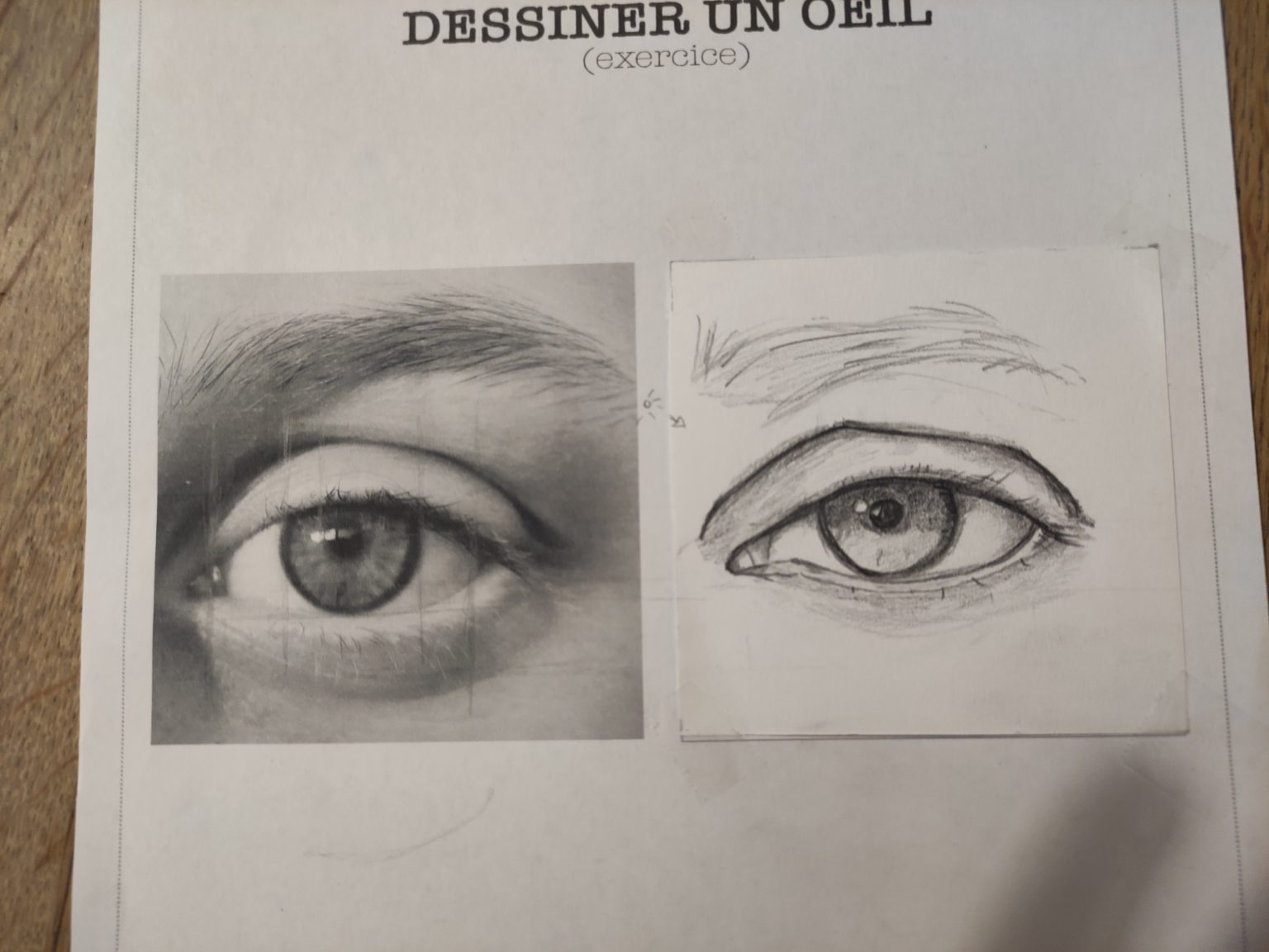 – Vos proportions sont bonnes et vous avez bien compris la forme de l’œil, continuez comme cela !