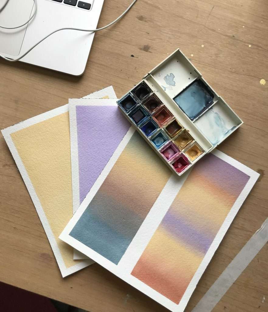 Maitriser cette technique Ă  l’aquarelle vous sera essentielle pour rĂ©aliser de beaux couchers de soleil, des paysages colorĂ©s ou encore donner du volume Ă  vos formes.