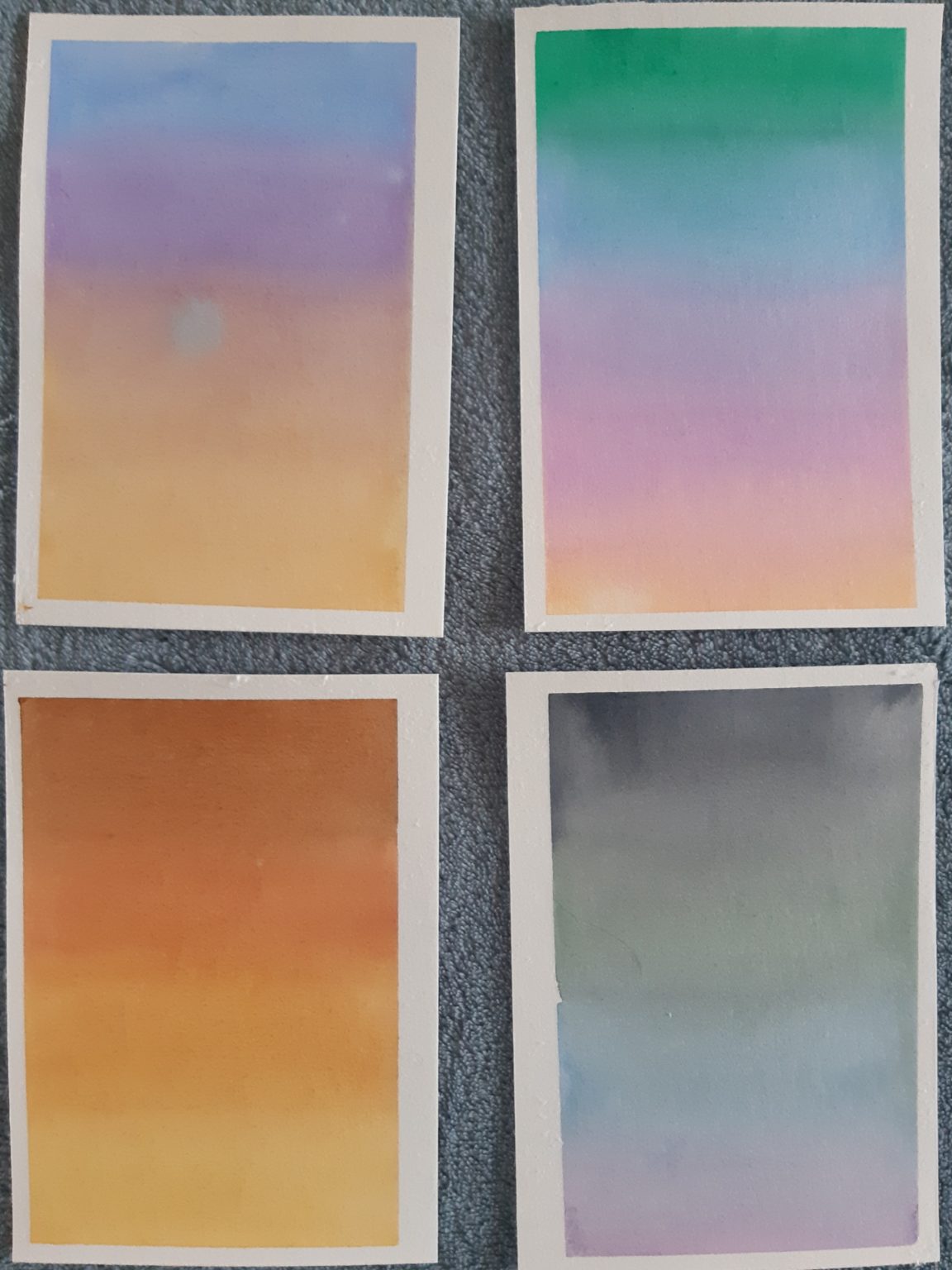Voici mes dĂ©gradĂ©s de couleurs, j’ai rencontrĂ© moins de difficultĂ©s que dans la leçon prĂ©cĂ©dente.