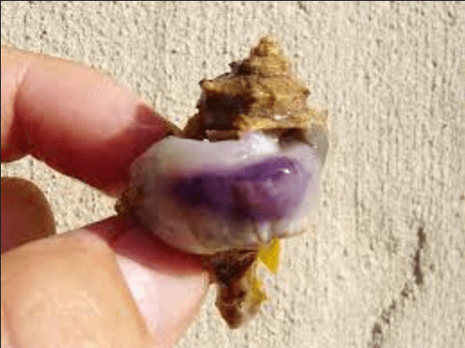 • le murex, est un petit escargot marin utilisé pour le pourpre qui colorait dans l’Antiquité l’ourlet de la toge des sénateurs et le vêtement des empereurs à Rome.