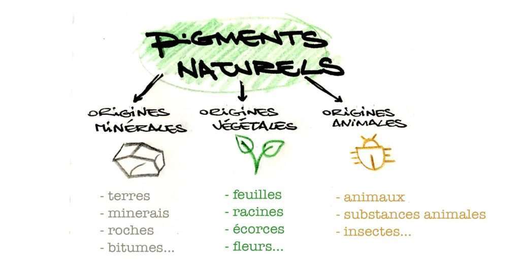 – les pigments d’origines naturelles (comme les pigments à base de plantes ou de roches),