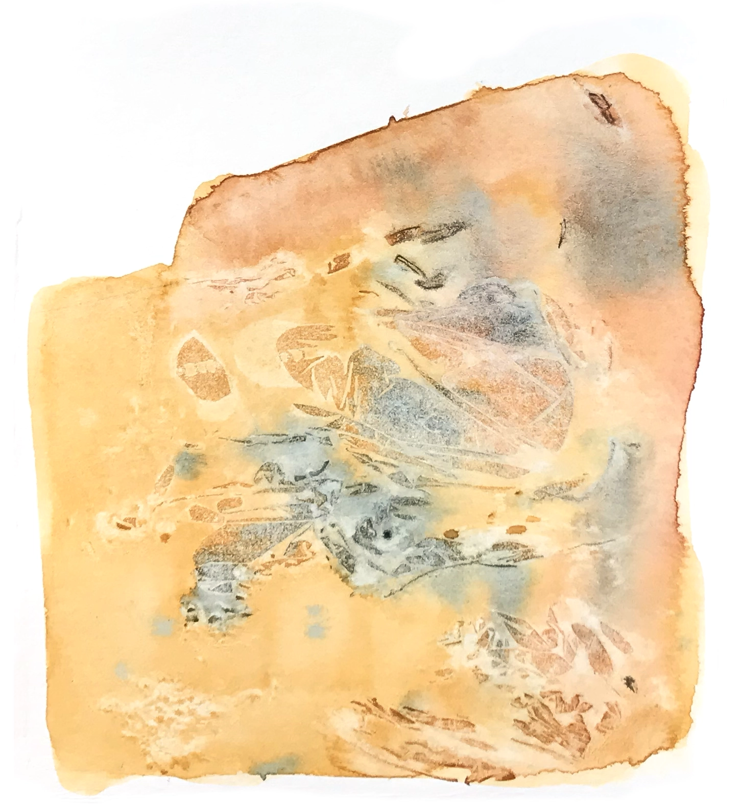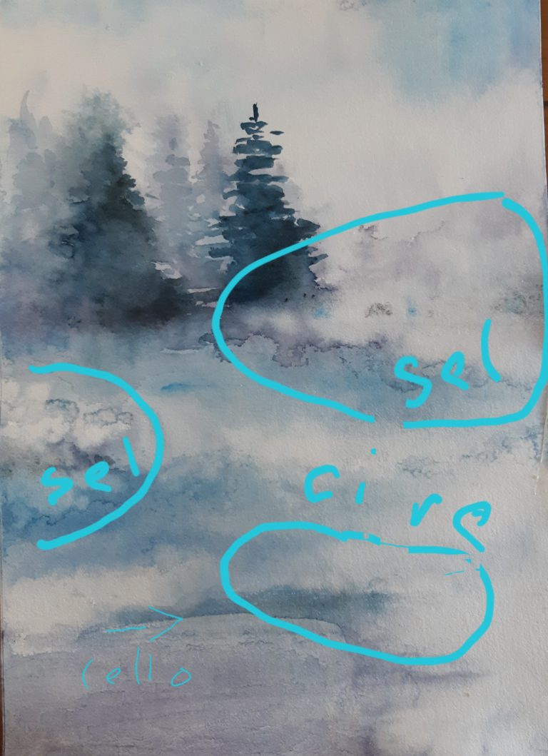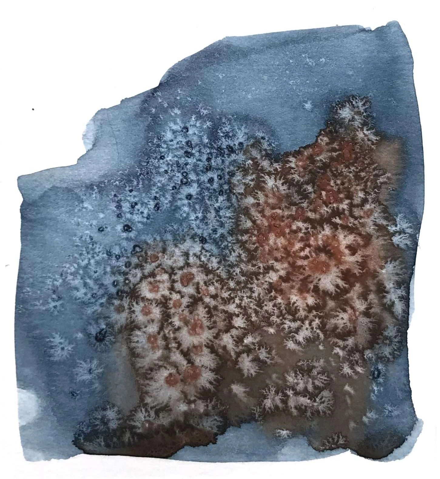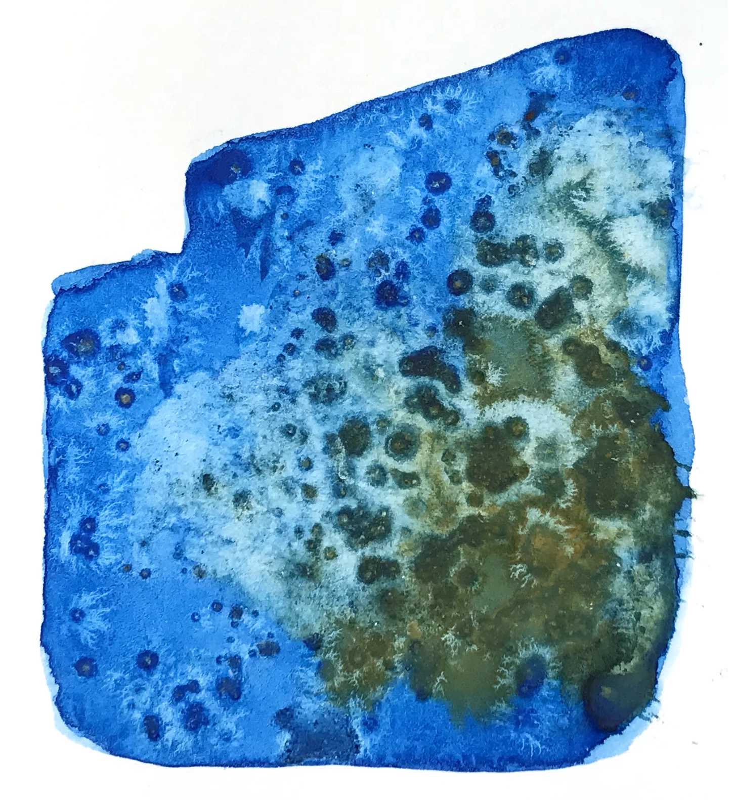 Parfois ( sur cellulose) le sel sĂšche et je n’ai que de petits points foncĂ©s agglomĂ©rĂ©s au sel que je n’arrive plus Ă  retirer. Ça crĂ©e des effets vieilli ideal pour la rouille mais pas le cĂŽtĂ© cotonneux attendu. Parfois j’ai l’impression que ça ne va pas fonctionner alors je rajoute quelques touches plus pigmentĂ©es, c’est probablement mon erreur… sur mon paysage jai plutĂŽt l’impression d’avoir ouvert des blancs!!!