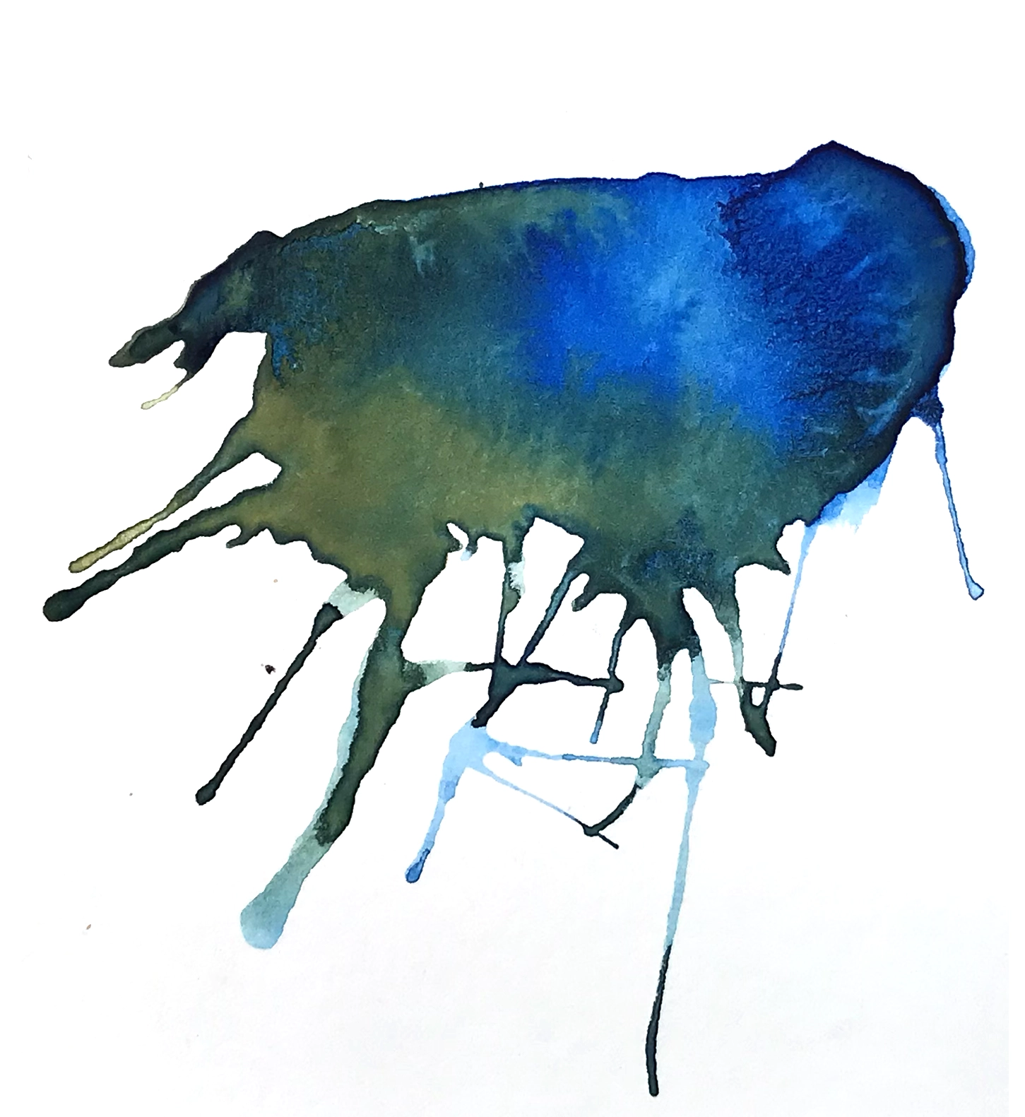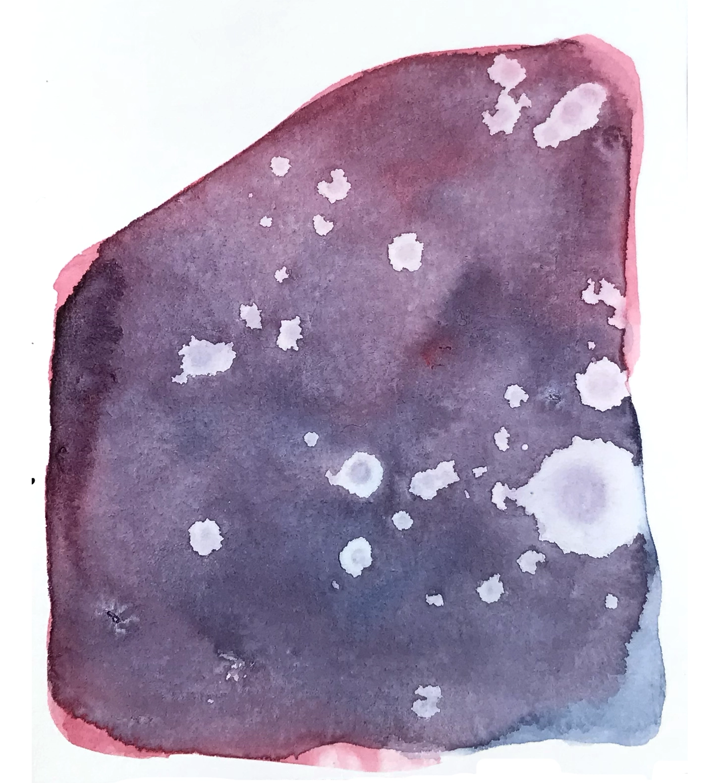 â–Ș L’alcool, appliquĂ© sur une aquarelle encore humide, repousse les pigments, crĂ©ant des cercles ou des motifs alĂ©atoires.