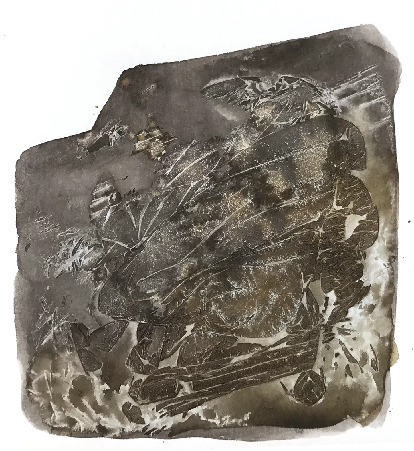 J’ai commencĂ© par vouloir essayer Ă  nouveau ces techniques dans un paysage qui me permettai de tester aussi la technique du cours suivant pour travailler dans l’humide( feuille sur plaque de verre avec sopalin intercalĂ©).