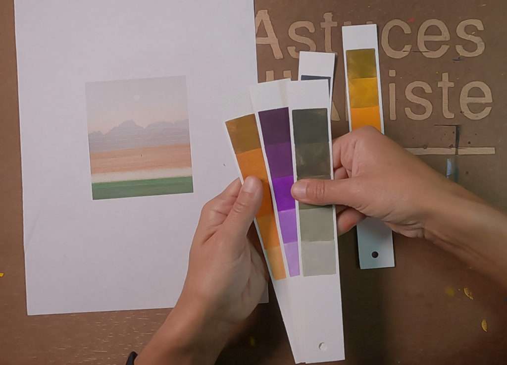 → Vous pouvez vous aider de vos bandelettes pour retrouver les bonnes teintes et/ou les harmoniser entre elles.