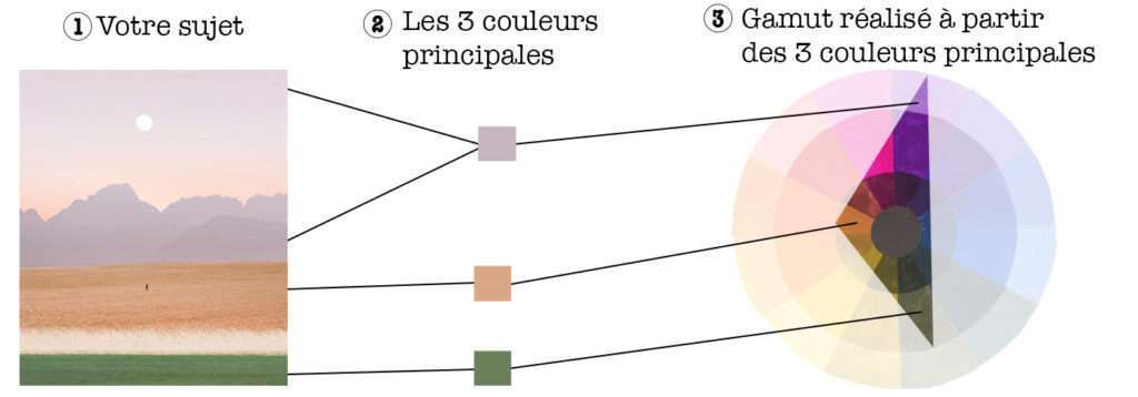 ▪️ Maintenant que vous savez quelles couleurs principales, vous avez envie d’utiliser, vous pouvez facilement tracer votre gamut.