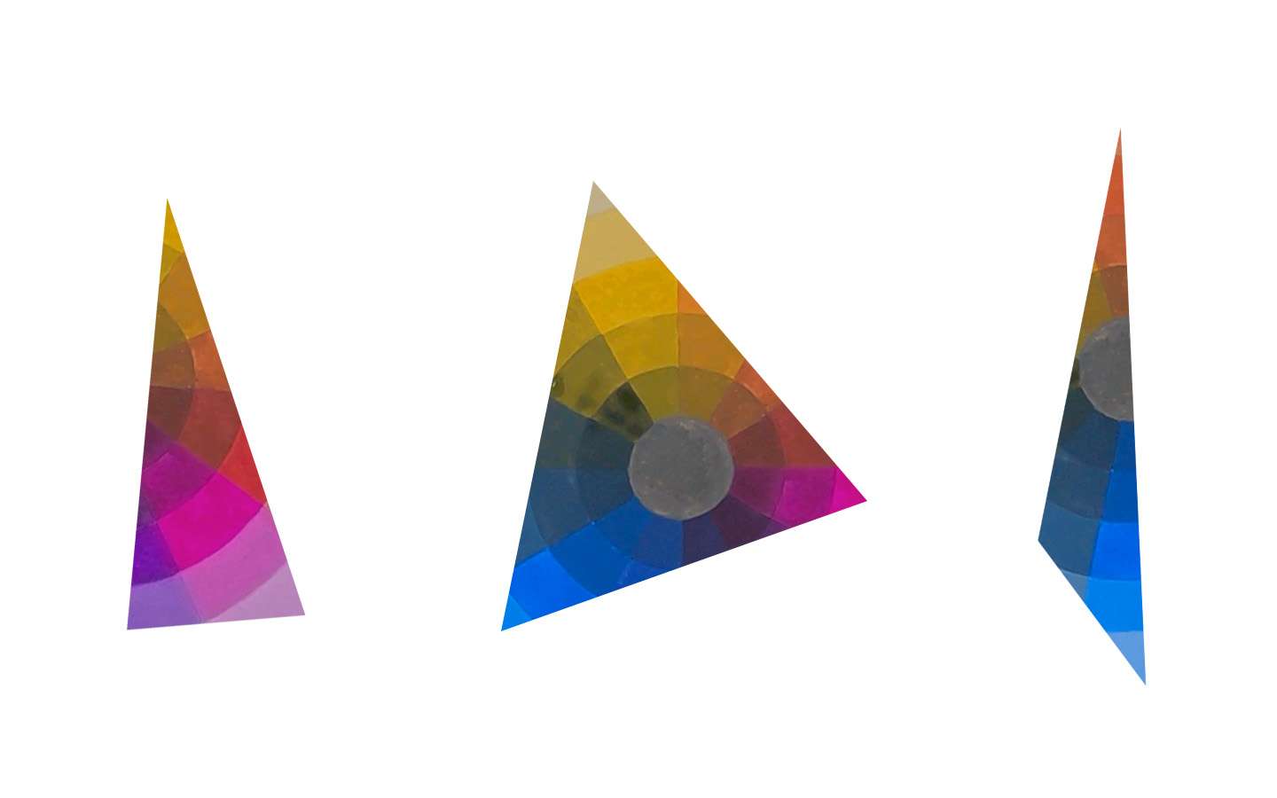 → Pointer les couleurs principales confirmées puis relier tous les points entre eux de façon à obtenir un triangle sur votre feuille de calque.