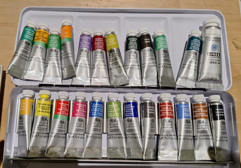 Je viens seulement aujourd’hui de voir votre commentaire. Sincèrement, j’ai du mal à distinguer la qualité des marques, pour moi elles sont plus ou moins similaires. En ce qui concerne les couleurs, mon objectif pour l’avenir, c’est de progressivement me limiter à une vingtaine de couleurs maximum (mono pigmentaire de préférence) et m’en tenir. Un autre de mes projets, ce serait de me procurer les 3 bleus que je préfère, idem pour 3 jaunes et bleus, et d’après mes calculs, avec toutes les associations, cela me ferait 27 roues chromatiques, et donc une gamme de teintes très importantes que je n’aurais plus à recréer par la suite, les ayant visuellement devant moi. Est-ce une bonne idée selon vous, ou bien est-ce une perte de temps inutile, avec des résultats qui ne seront pas forcément à la hauteur ?