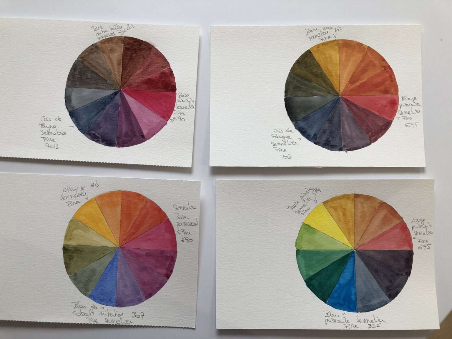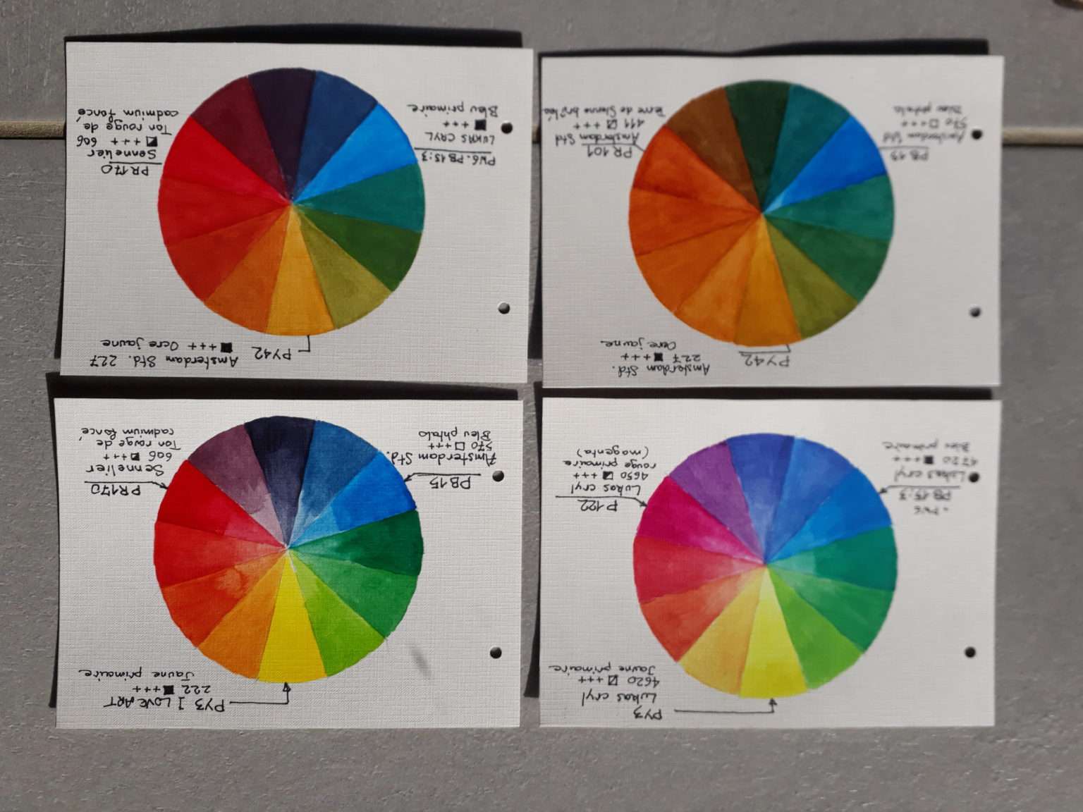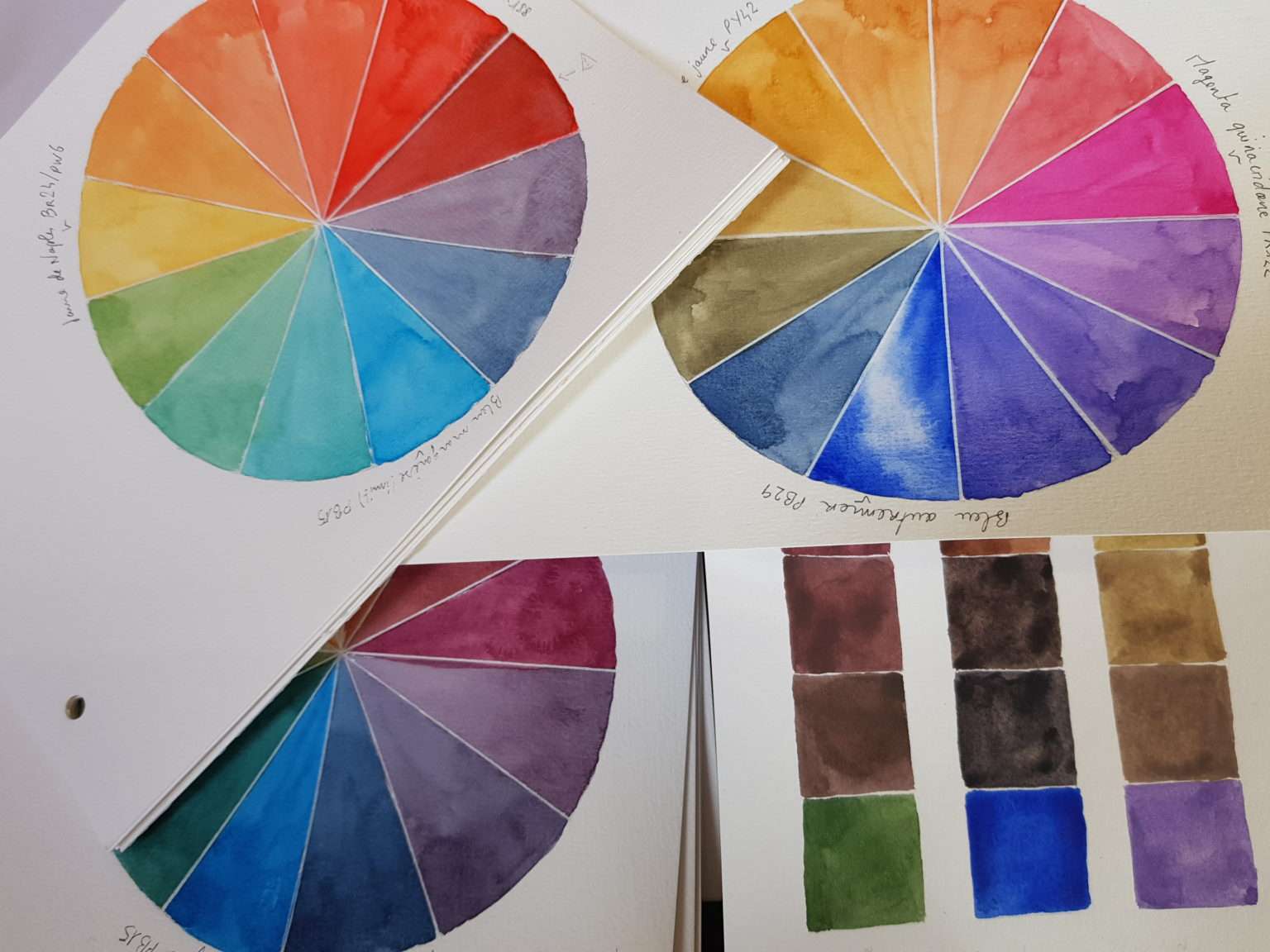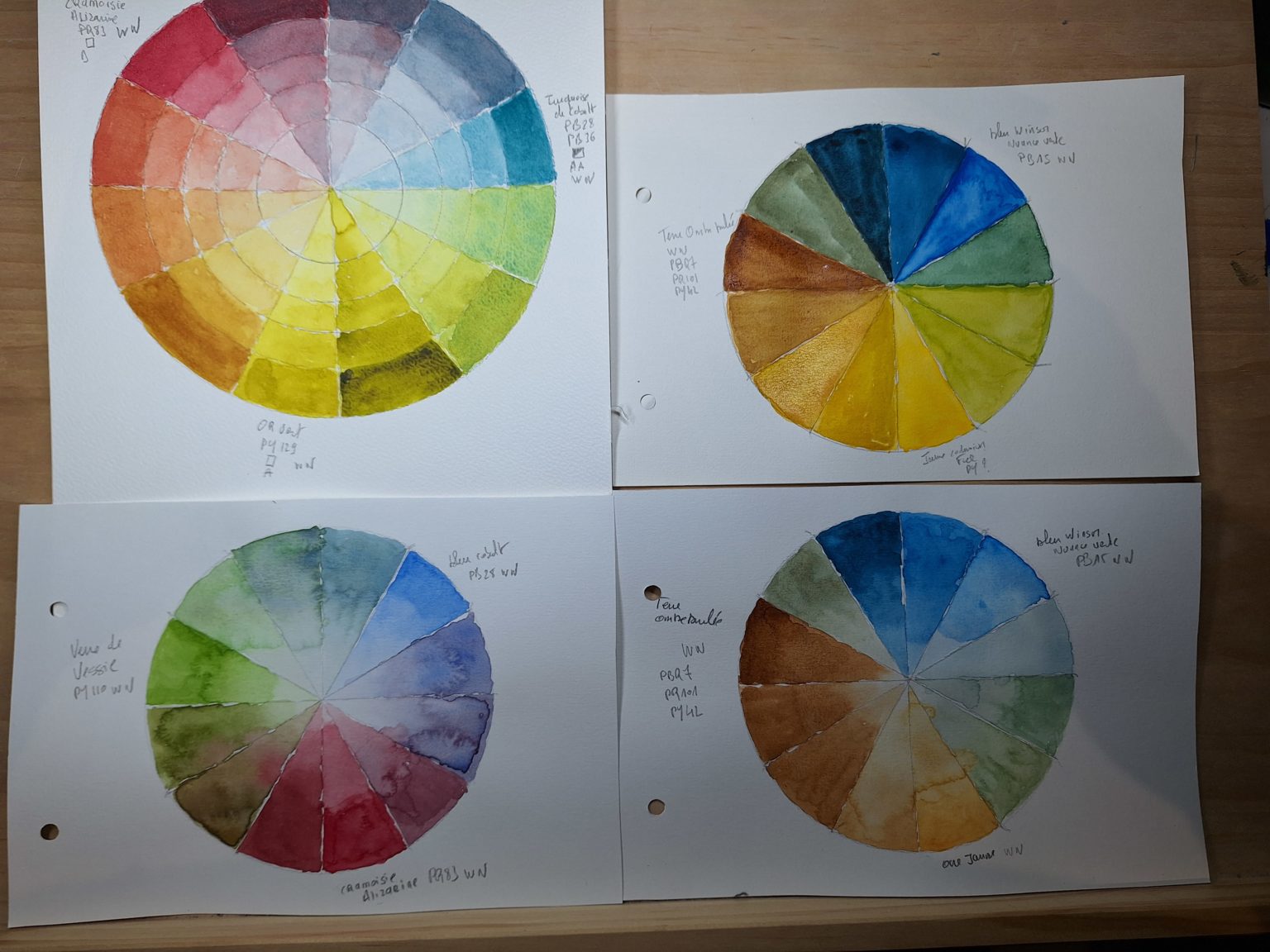 Petite exploration des premières gammes de couleurs a partir du peu de couleurs monopigmentaire en ma possession. Reste à explorer les mélanges…