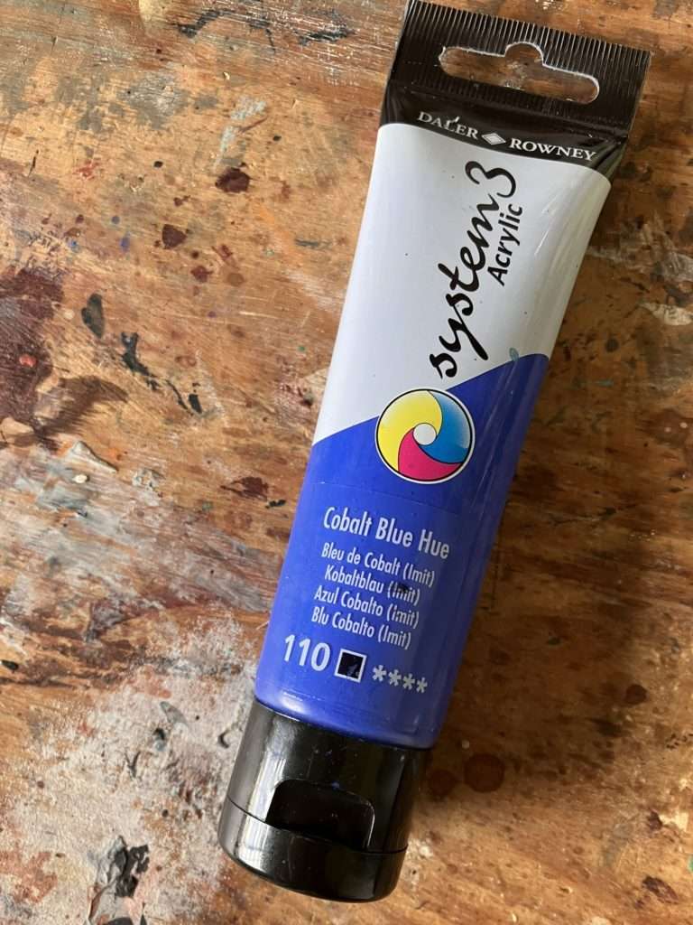 Pour le petit cercle j’ai eu un problème avec le bleu de cobalt. Je ne sais pas pourquoi il n’est toujours pas complètement sec après plus de 16 heures 🤷🏼♀️ C’est bizarre ça pour de l’acylique…
