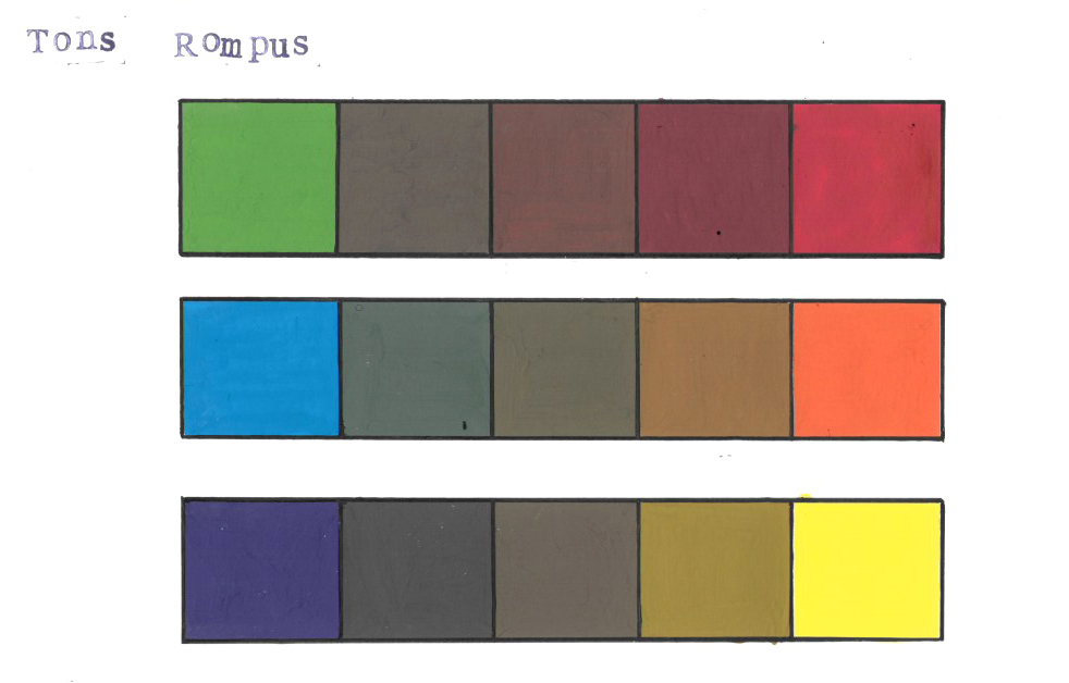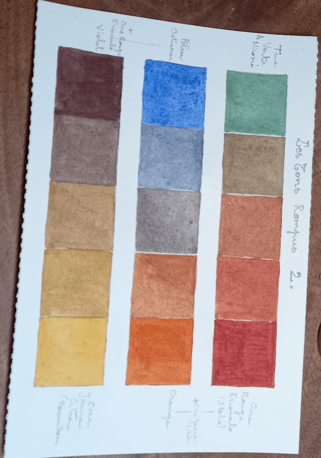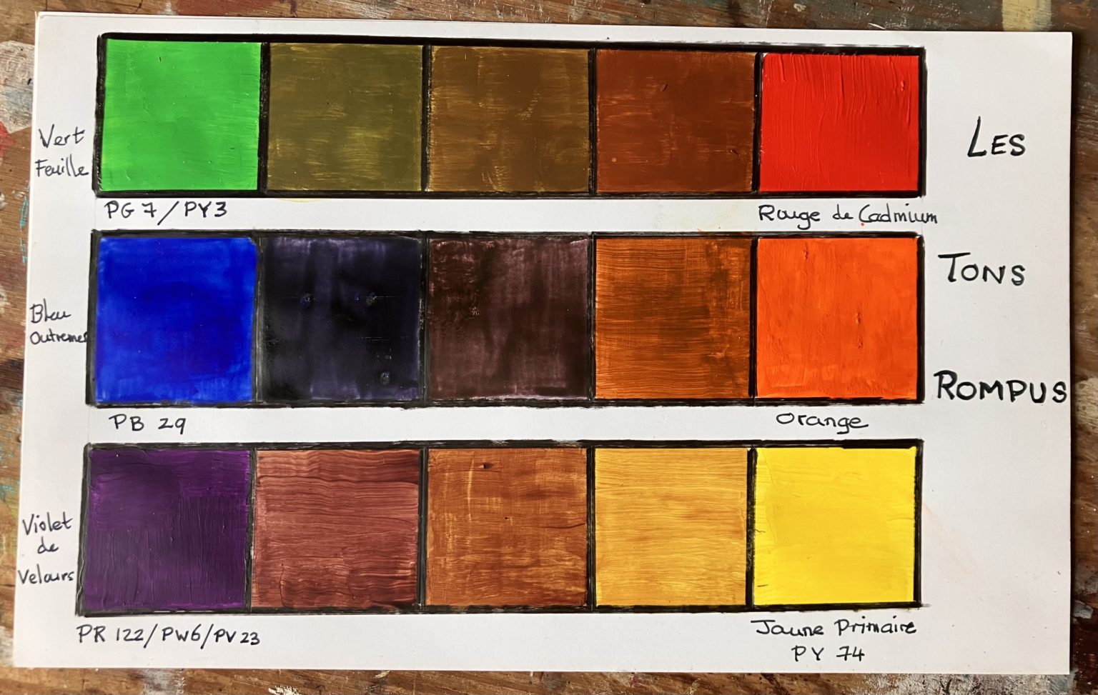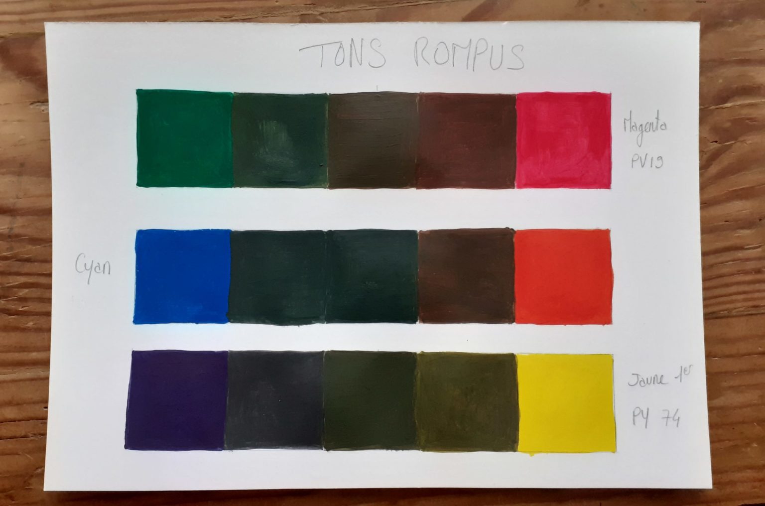 On les appelle ‘rompus’ car on vient en quelque sorte casser la couleur en la neutralisant avec une couleur contraire (sa complémentaire).