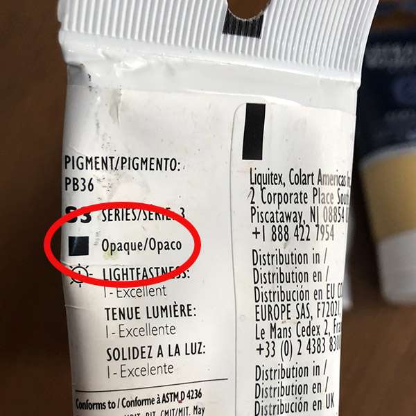 ➜ En lisant tout simplement les infos, sur vos tubes de peinture :